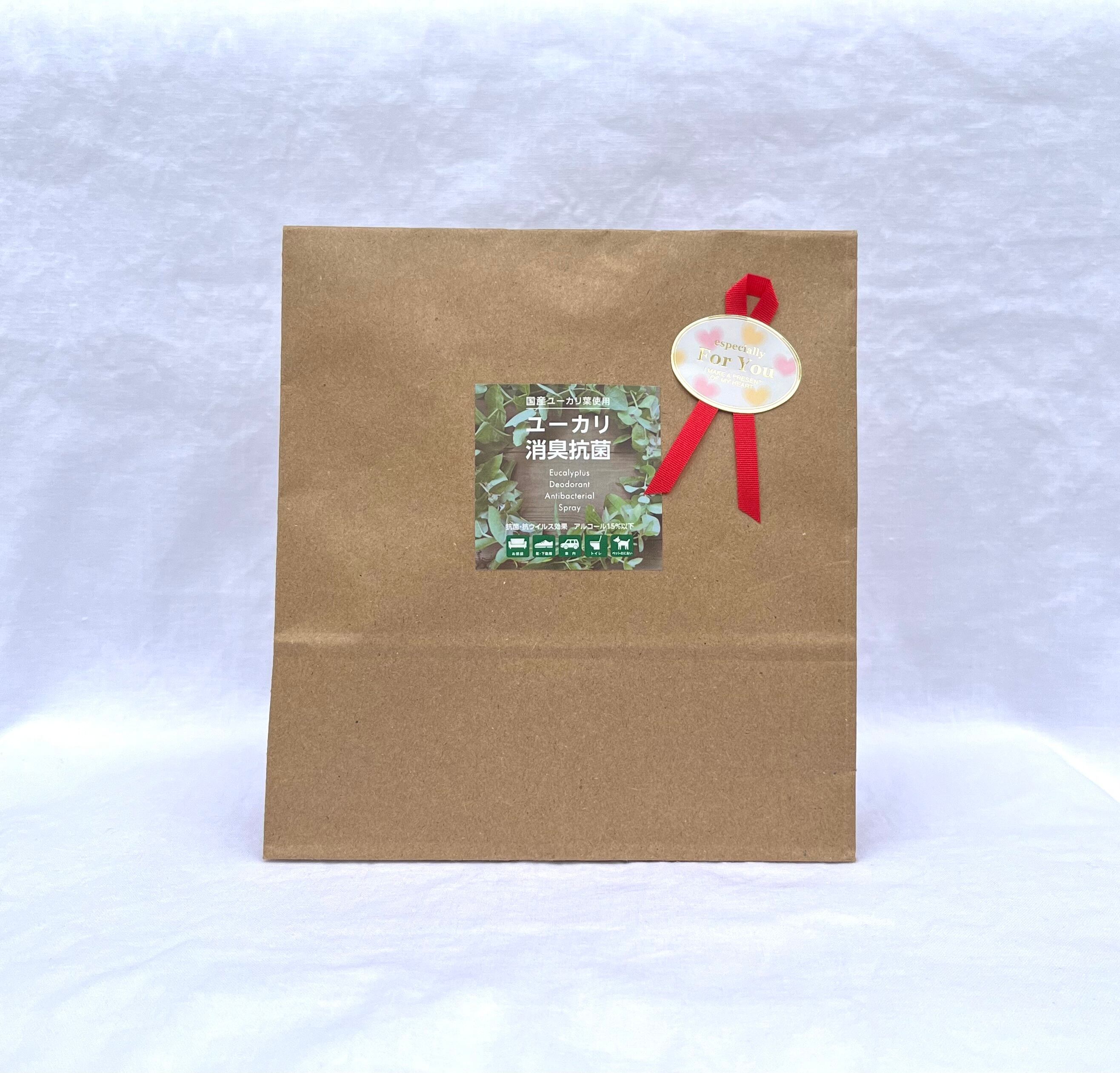 ユーカリ消臭抗菌 スプレー100㎖3本 をラッピング袋に入れてお送りします。