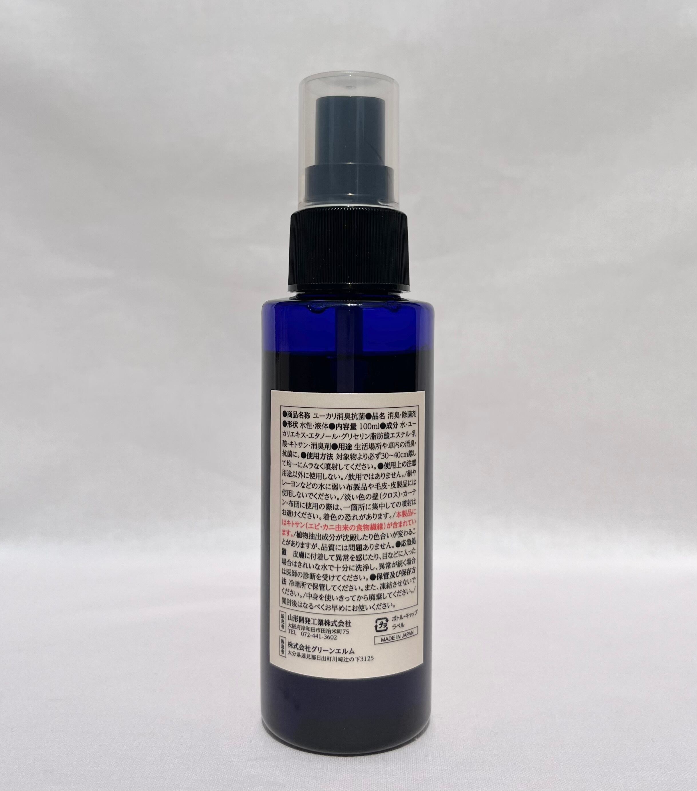 成分:水、ユーカリエキス、エタノール、グリセリン脂肪酸エステル、乳酸、キトサン、消臭剤